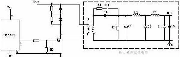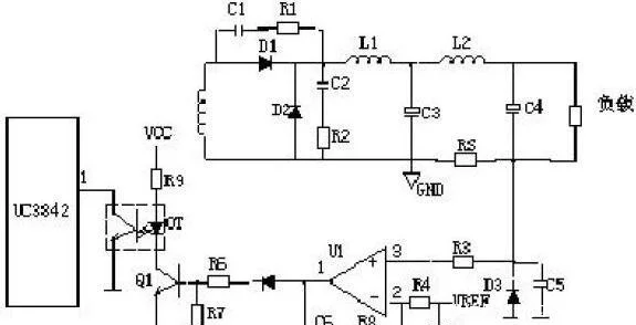 R4、C3、R5、R6、C4、D1、D2組成緩沖器,和開關(guān)電源MOS管并接,使開關(guān)電源管電壓應(yīng)力削減,EMI削減,不發(fā)生二次擊穿。在開關(guān)電源管Q1關(guān)斷時(shí),變壓器的原邊線圈易發(fā)生尖峰電壓和尖峰電流,這些元件組合一同,能很好地吸收尖峰電壓和電流。從R3測(cè)得的電流峰值信號(hào)參加當(dāng)前工作周波的占空比操控,因此是當(dāng)前工作周波的電流約束。當(dāng)R5上的電壓到達(dá)1V時(shí),UC3842停止工作,開關(guān)電源管Q1當(dāng)即關(guān)斷。R1和Q1中的結(jié)電容CGS、CGD一同組成RC網(wǎng)絡(luò),電容的充放電直接影響著開關(guān)電源管的開關(guān)電源速度。R1過(guò)小,易引起振動(dòng),電磁干擾也會(huì)很大;R1過(guò)大,會(huì)降低開關(guān)電源管的開關(guān)電源速度。Z1通常將MOS管的GS電壓約束在18V以下,然后保護(hù)了MOS管。