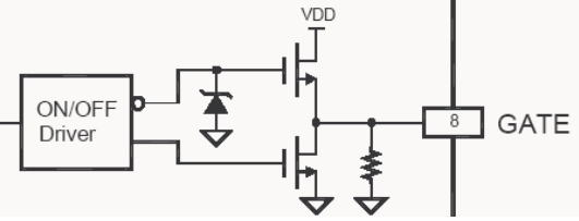 1. Gate:PWM脈沖輸出端。圖騰柱(即推拉輸出電路)輸出極驅動功率開關管。