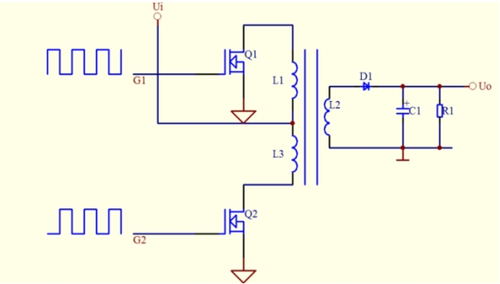 該種開關(guān)電源成本較低,能夠輸出多組不同的電壓,電壓調(diào)整方便,因而運用非常廣泛。首要缺點是:紋波電壓較大(一個周期僅作業(yè)半個周期左右)。另一點便是,當(dāng)Q截止時,Q1接受很大的反向電壓。U=2Ui,所以Q1選擇耐壓較大的。
