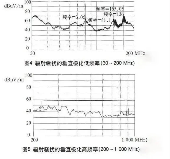 本開關電源 通過了傳導攪擾的測驗,測驗波形如圖2、3所示。輻射攪擾高頻段2301000MHz也測驗合格,如圖5所示。只是在30200MHz頻段范圍內的垂直極化指標超支, 超支20dB,如圖4所示。