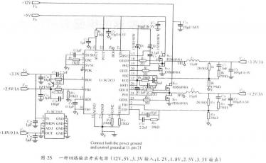 5、開關(guān)電源PCB排版例3終究討論一種多路輸出開關(guān)電源PCB排版關(guān)鍵。此電源有3組輸入電壓(12V,5V和3.3V),4組輸出電壓(3.3v,2.6V,1.8V,1.2V)。該電源運(yùn)用了,一集成多路開關(guān)控制器(Serotech類型SC2453)。SC2453供應(yīng)了4.5V~30V的寬輸入電壓范圍,兩個(gè)高達(dá)700kHz開關(guān)頻率和高達(dá)15A輸出電流,以及低至0.5V輸出電壓的同步降壓轉(zhuǎn)換器。它還供應(yīng)了一個(gè)專用可分配正壓線性調(diào)節(jié)器和一個(gè)專用可分配負(fù)壓線性調(diào)節(jié)器。TSSOP-28封裝減小了所需線路板面積。兩個(gè)異相降壓轉(zhuǎn)換器可以減小輸入電流紋波。圖25是這種多路開關(guān)電源的原理圖。其間3.3V輸出由5V輸人產(chǎn)生,l.2V輸出由12V輸入產(chǎn)生,2.6V和1.8V輸出由3.3V輸入產(chǎn)生。由于該電源上所有元器件都有必要被放置在一個(gè)面積較小的PCB上,為此有必要將電源的功率地層和控制信號地層分隔開來。參照前面幾節(jié)中討論過的關(guān)鍵,首要將圖25中銜接到功率地層的元器件和銜接到控制信號地層的元器件區(qū)別開來,然后將控制信號元器件放在信號地層上并靠近SC2453控制信號地層與功率地層通過單點(diǎn)相銜接。這銜接點(diǎn)一般會挑選在控制芯片的接地腳(SC2453中的腳21)。圖26詳細(xì)描述了該電源排版辦法。