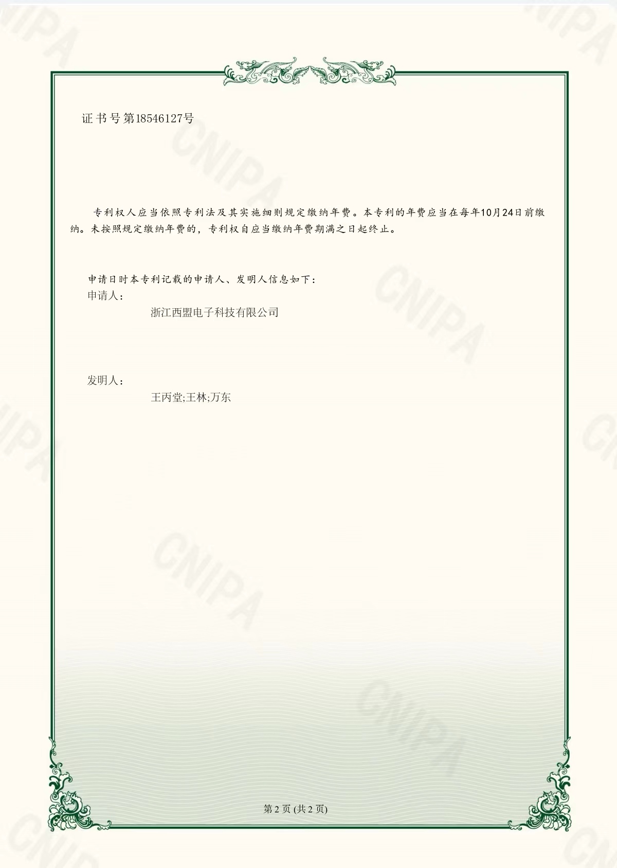 實用新型專利證書