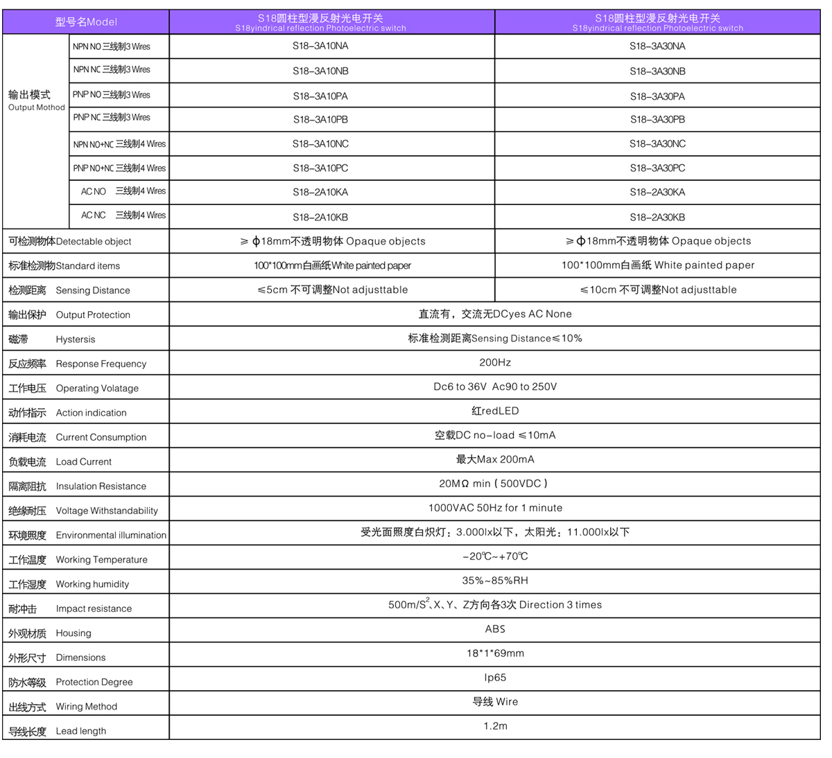 當前位置:主頁 > 產品展示 > 傳感器系列 > S18系列A